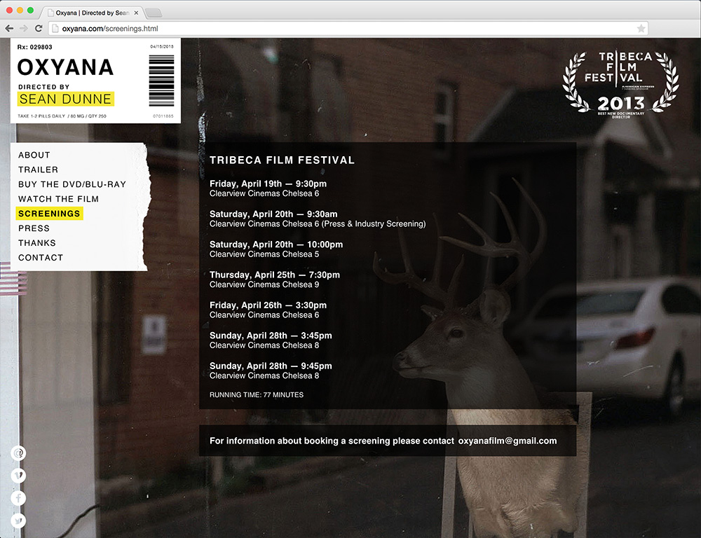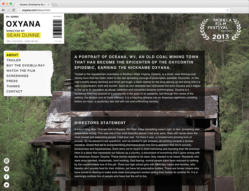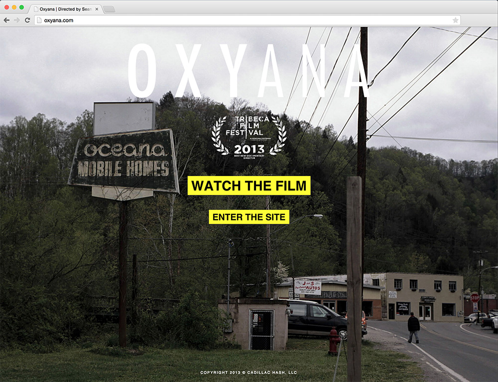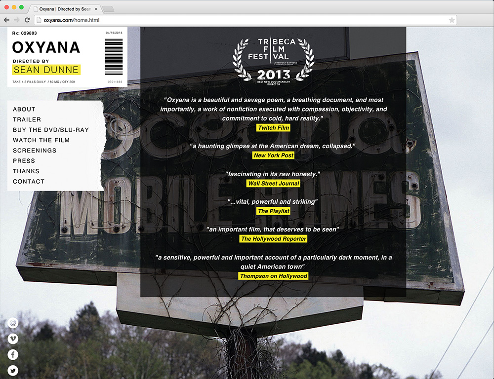 Responsive website for Sean Dunne's documentary Oxyana.